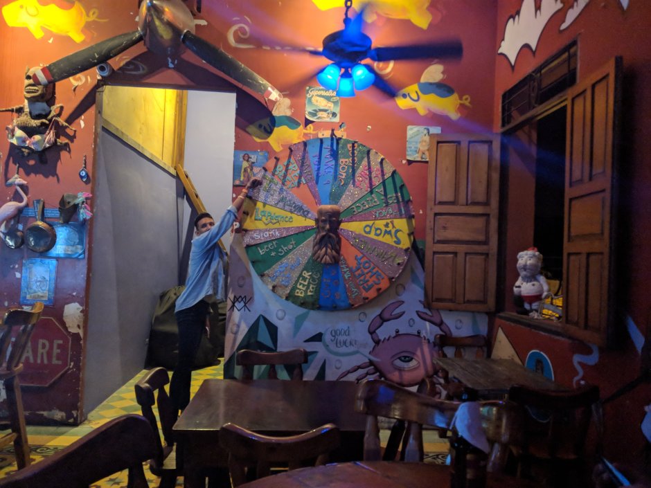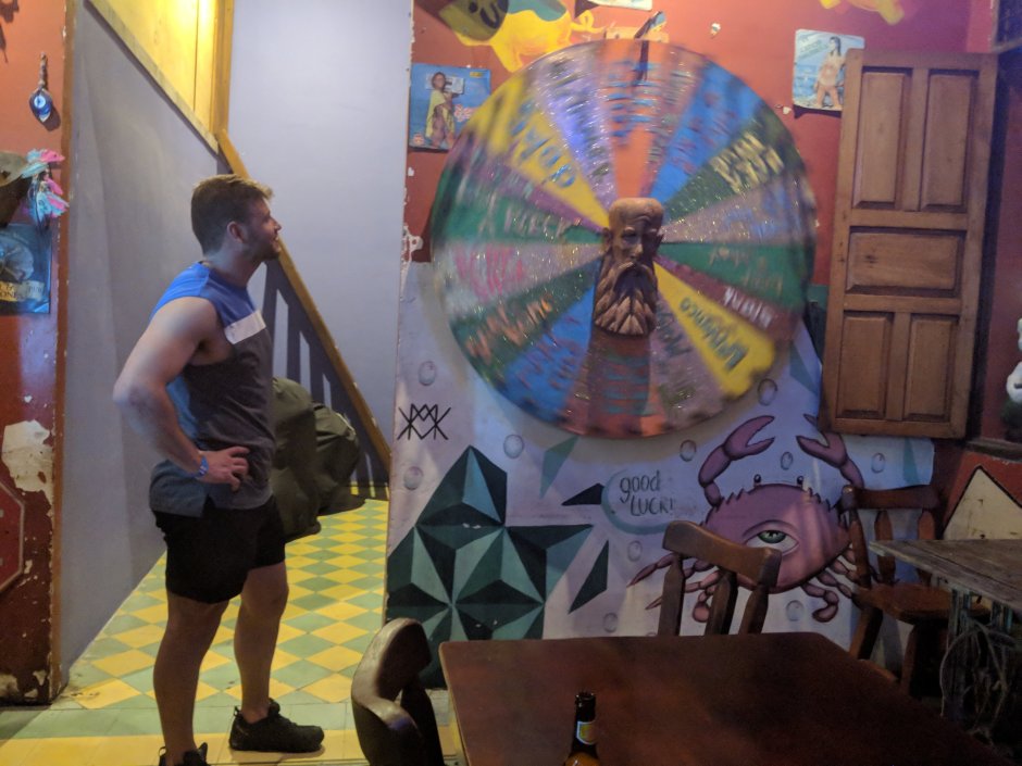Eventually we played this wheel game they have at the hostel. Here are some pics: