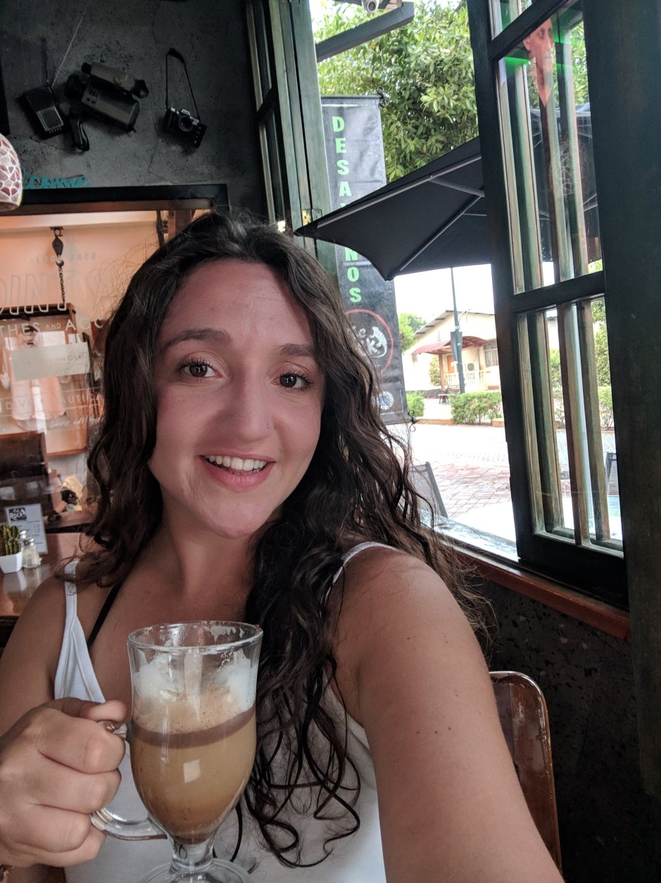 P.S.- here is me drinking my favorite cappuccino at ‘The Rock’ after our kayaking!