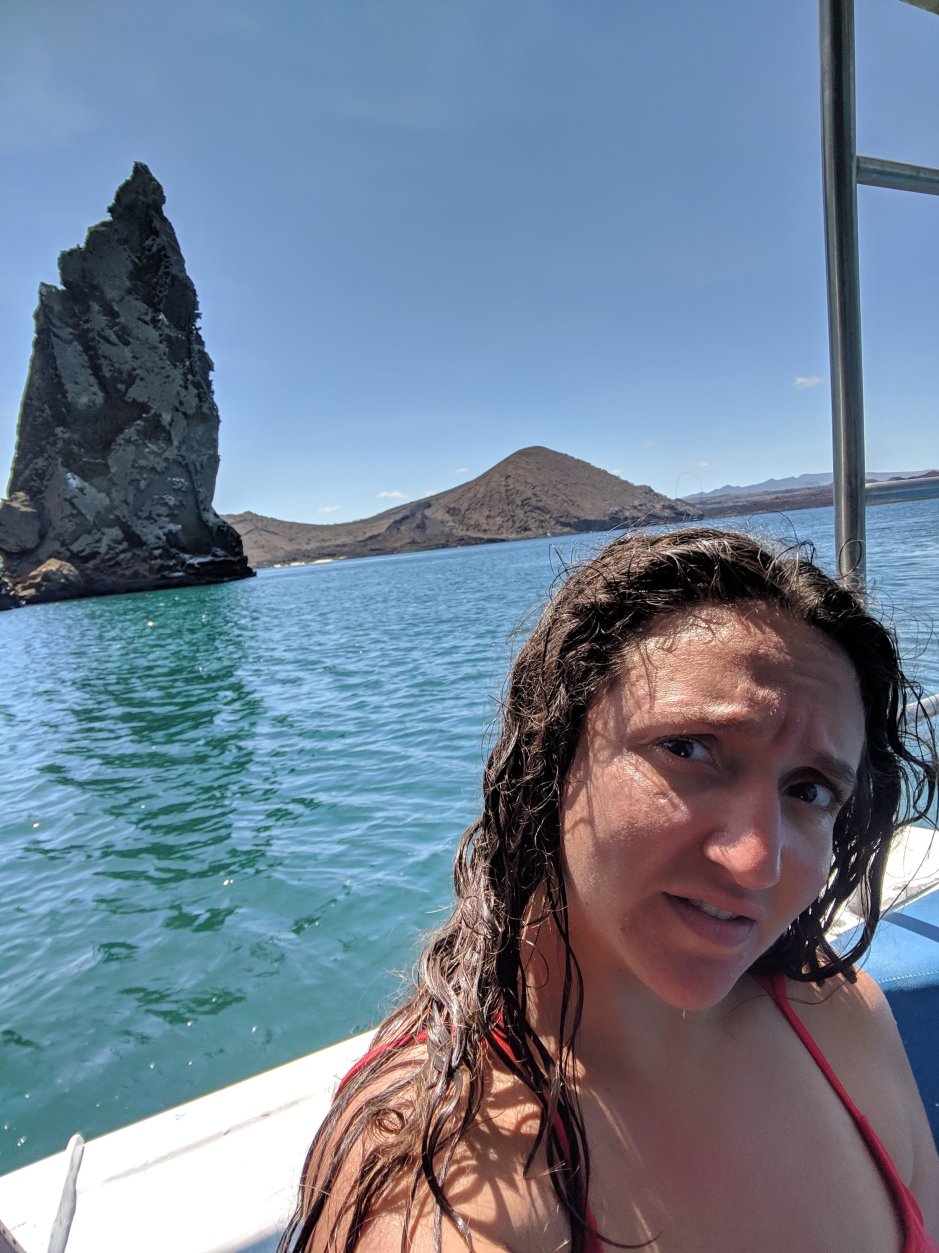 But it started off with one of my favorite places I explored in the Galapagos- Bartolome Island. It was me, Tamara, Itay, and Ben. The guy who we made our deal with, Carlos, messed up the time AGAIN, and we were there at 6am as he told us…but the agency did not leave until 715. Also, he never got us our wet suits and we had to run around trying to find somewhere that was open and ended up having to pay out of pocket for our wet suits, but Carlos told us he would pay us back later today…