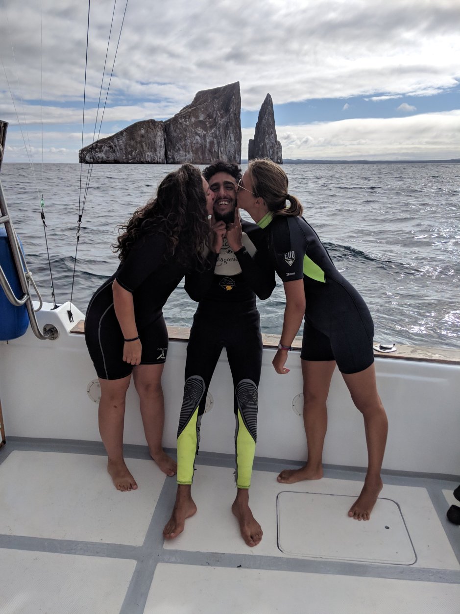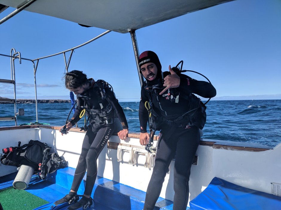 Day 38: My First Dive Thursday, November 8th Galapagos, Island Santa Cruz Stayed at Darwin Hostel (Day 6 in the Galapagos) Dear Obiwan, Obiwan Kenobi I went diving today for the first time and it was SO INCREDIBLE. I honestly still feel a little speechless. Today’s trip was to Seymor Island, one of the diving spots around Santa Cruz. The plan was for me to dive with the owner of the dive place, Rene, and everyone else to dive with Rene’s son. Tamara is a rescue diver and worked I’m Thailand for 3 months and currently has 71 fricken dives in her life! Itay just learned in Colombia so he has like…7?