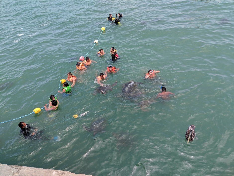 When we got there it was high tide, which supposedly means the best visibility…but we couldn’t see ANYTHING. Itay got out after a few minutes but me and Margaux wanted to look all over. As we were swimming a local offered to show me and Margaux and this older man who he was with around the Concha. He said he will show us all the animals! We followed him…and still saw nothing. And we almost got SUCKED OUT TO SEA! There was an incredibly strong current as we were all swimming that ended up having the tour guide hold onto the old man and me and Margaux just start getting pulled back soooo intensely and we were quickly about to be under the rope marking ‘don’t swim past here.’ We were swimming so hard and laughing at points at how little distance we were making…but finally, don’t worry Obi, we got past the current.
