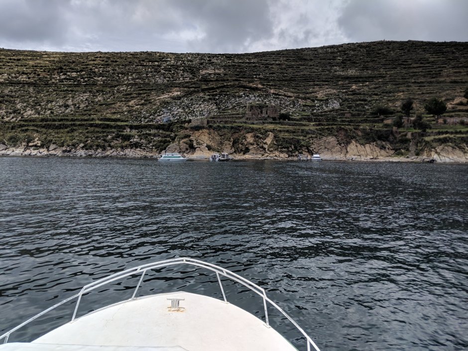 Then we were on the boat! The boat first stops at Isla del Luna and then Isla del Sol. In the beginning we were excited about the boat and chose to sit on the top. Not knowing that it was FREEZING due to the clouds and RAIN for a moment and not knowing they DON’T let you come back down due to the boat moving (.00001 miles an hour?!?).